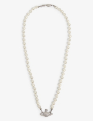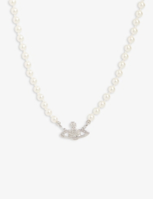 Vivienne Westwood Jewellery Mini Bas Relief Brass Swarovski Crystal And Pearl Pendant Necklace Selfridges Com
